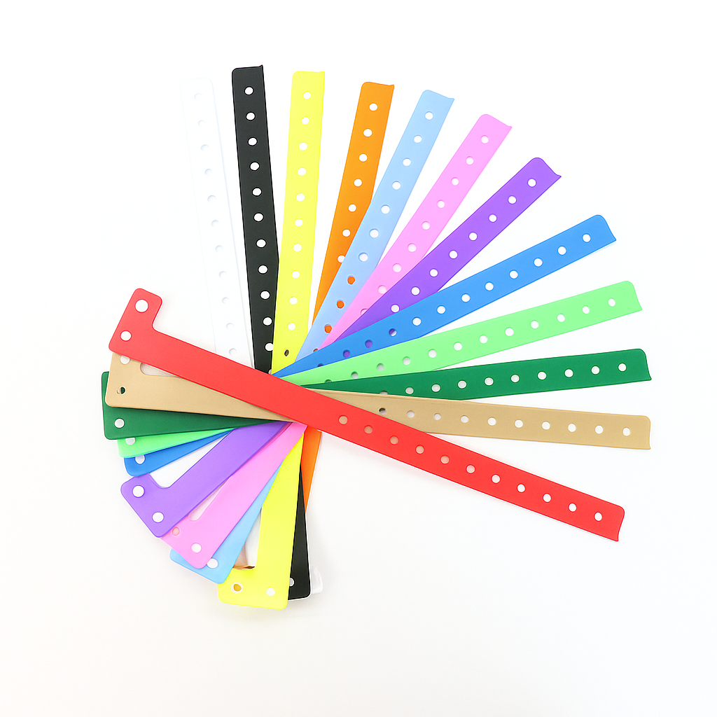 We offer a versatile range of high-quality wristbands to suit any need, including lightweight, water-resistant, tamper-evident Tyvek® wristbands for secure event entry; comfortable and durable fabric bands with vivid designs and secure closures for multi-day events and VIP access; advanced RFID wristbands for seamless access control and cashless payments at events, resorts, and venues; flexible, reusable, fully customizable silicone wristbands perfect for promotions, awareness campaigns, or team spirit; reliable, easy-to-read medical ID bands for hospitals and clinics to ensure patient safety; and more specialized options to meet every requirement. Our wristbands combine quality, comfort, and security to deliver the perfect solution for any occasion.